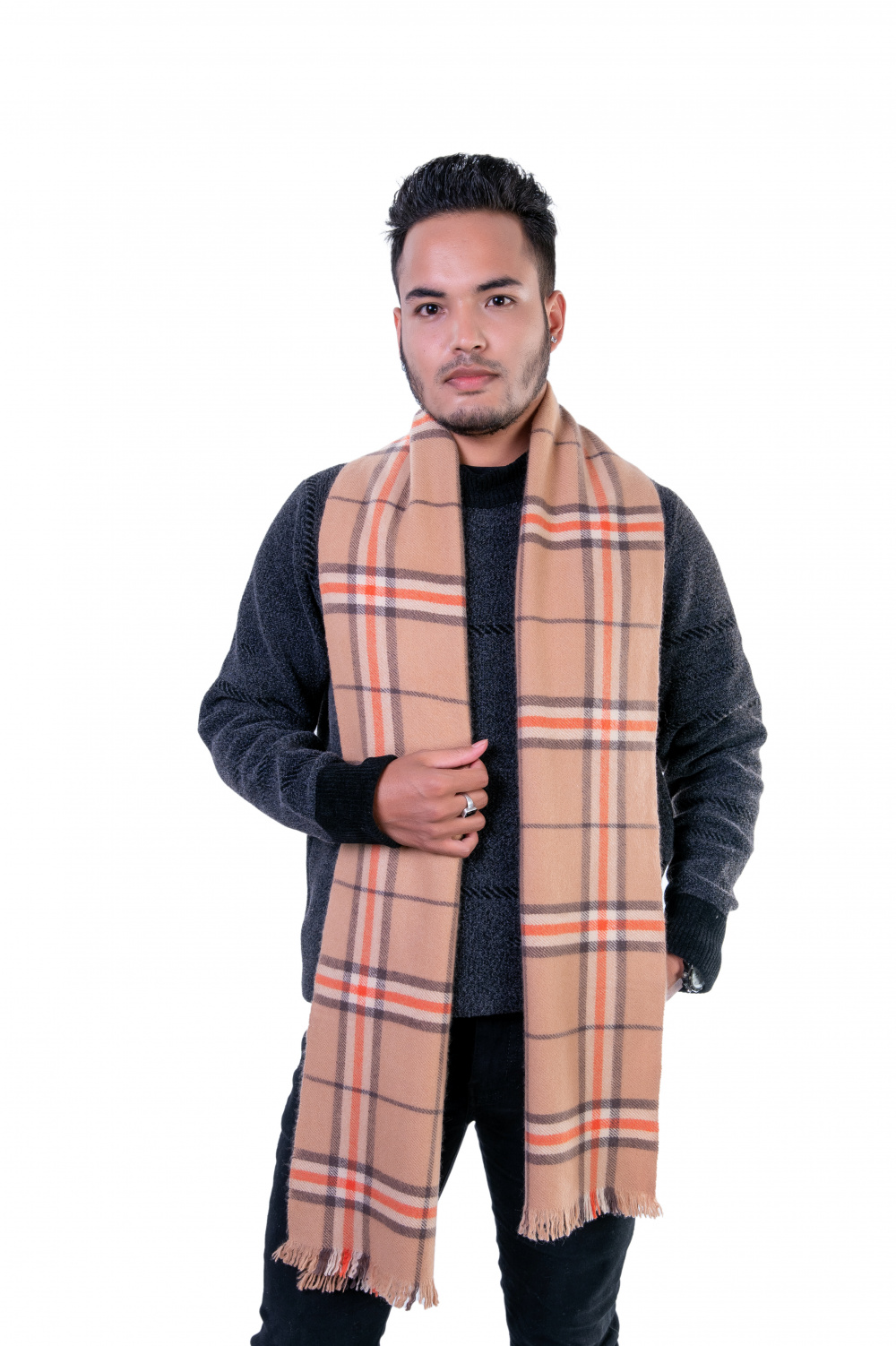 Wrap yourself in timeless sophistication with our Men’s Camel Plaid Cashmere Scarf.